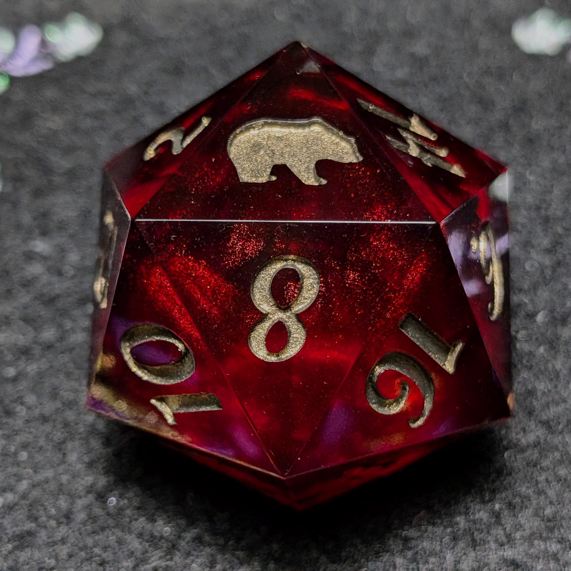 This D20 has a bear icon in place of the 20 (see pictures for example).