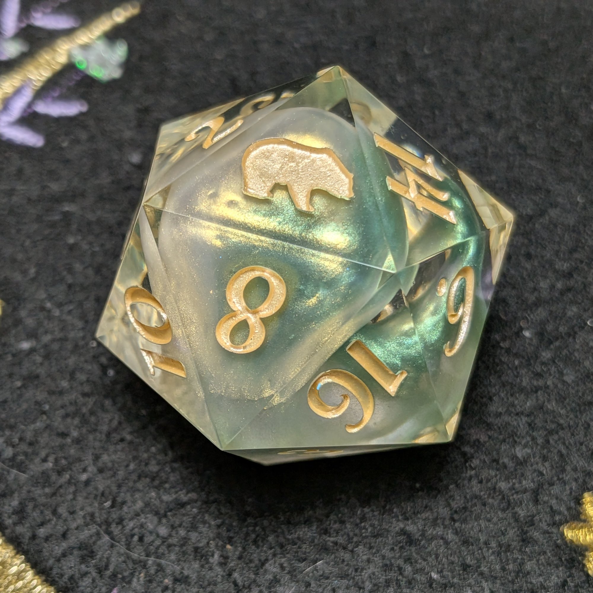 This D20 has a bear icon in place of the 20 (see pictures for example).